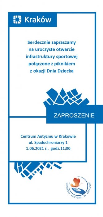 Dyrekcja SOSW pn. CA i CZR zaprasza na uroczyste otwarcie infrastruktury sportowej połączone z Piknikiem z okazji Dnia Dziecka1.06.2021 r.- wtorek 11.00 –rozpoczęcie, przecięcie wstęgi, przemówienia11.15-12.30.- zawody sportowe, wręczenie nagród12.15-13.15- wydawanie posiłku (obiad)14.00 zakończenie W programie ( w trakcie 11.15-14.00):- Zawody sportowe– Loteria fantowa- Podskoki i bujanie na wesoło – hamaki, trampolina- Warsztaty wykonywania biżuterii- Malowanie […]