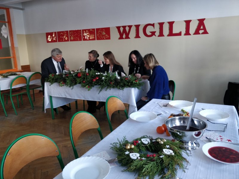Dzisiaj u nas w szkole przedsmak Wigilii i Świąt W wyjątkowej atmosferze mogliśmy zjeść wspólny posiłek i złożyć sobie życzenia oraz pośpiewać świąteczne piosenki Gościliśmy również specjalnych gości, Panią Małgorzatę Janiec, przewodnicząca POKiN (żołnierze wyklęci) oraz Pana Bogusława Kantora, przedstawiciela Hotelu Swing, z którym nasza szkoła branżowa nawiązała współpracę.